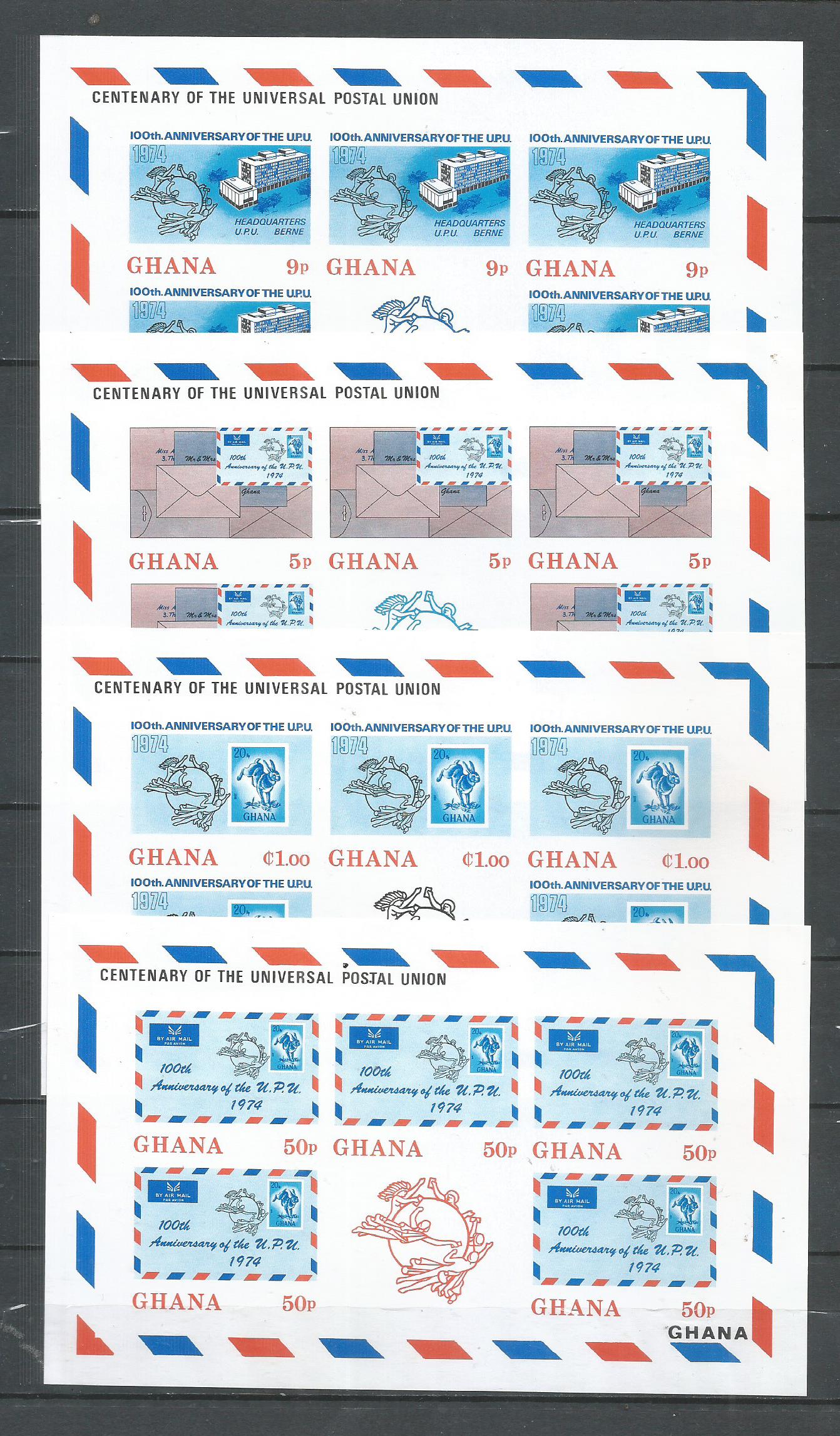 (±¹Á¦) °¡³ª > UPU 100ÁÖ³â (1974³â) ½ÃÆ®, 4¿Ï,¹«°ø (20.00$)